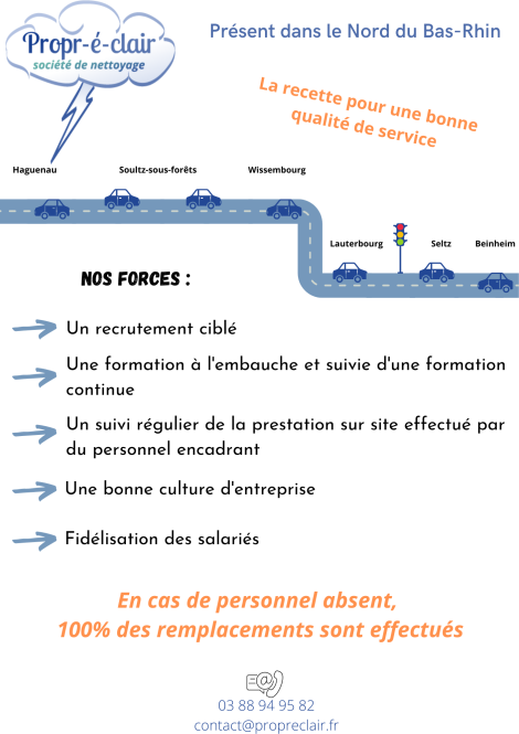 Propr-é-clair est spécialisée dans le nettoyage et l’entretien de locaux à usage professionnel : bureaux, écoles, sanitaires, vestiaires, résidences, professions libérales et tout autre type de locaux.